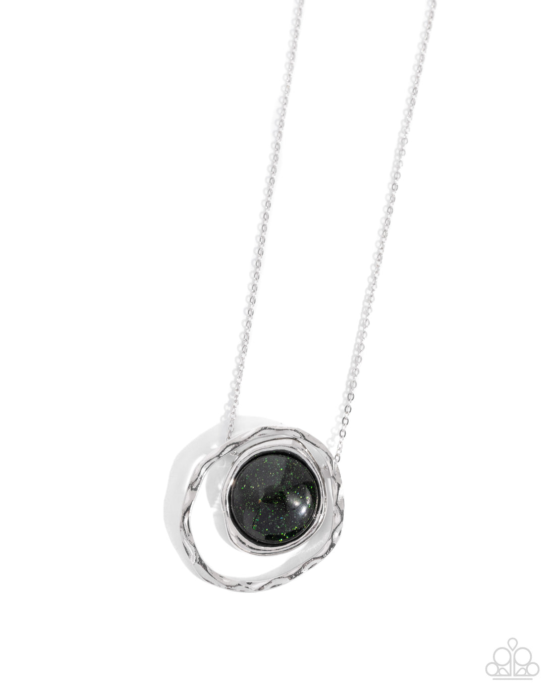 Featuring a glistening iridescence, an Green Ash shell-like disc attaches to a shiny silver frame...