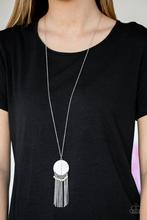Brushed in a high-sheen finish, a scratched silver disc swings from the bottom of a lengthened silver chain. Dainty white stone beads and shimmery silver chains stream from the bottom of the artisan inspired pendant, creating a whimsical fringe. Feature an adjustable clasp closure.