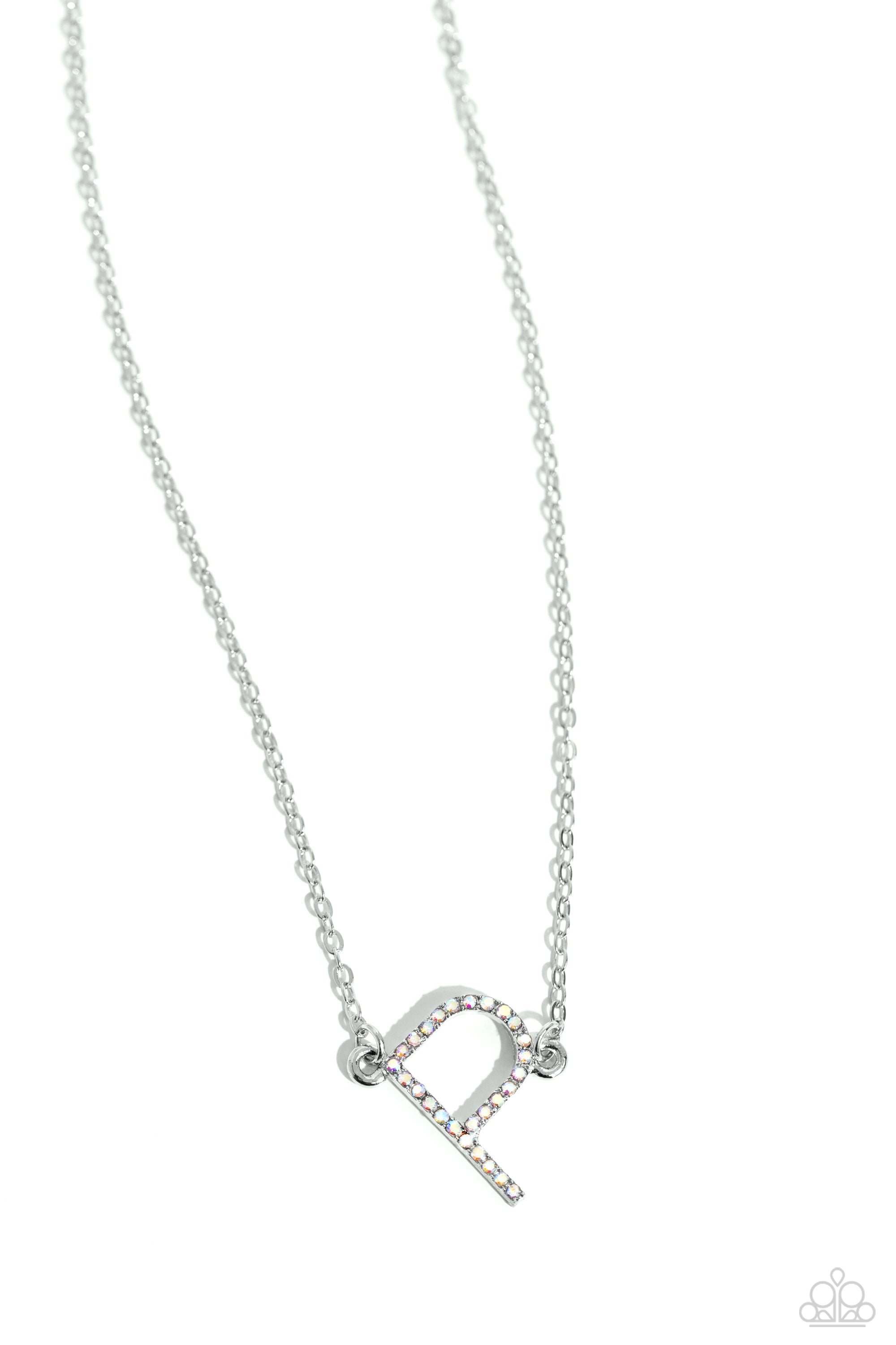Embossed with dainty iridescent rhinestones, a silver letter "P" hovers below the collar from a dainty silver chain, for a sentimentally simple design. Features an adjustable clasp closure. Due to its prismatic palette, color may vary.